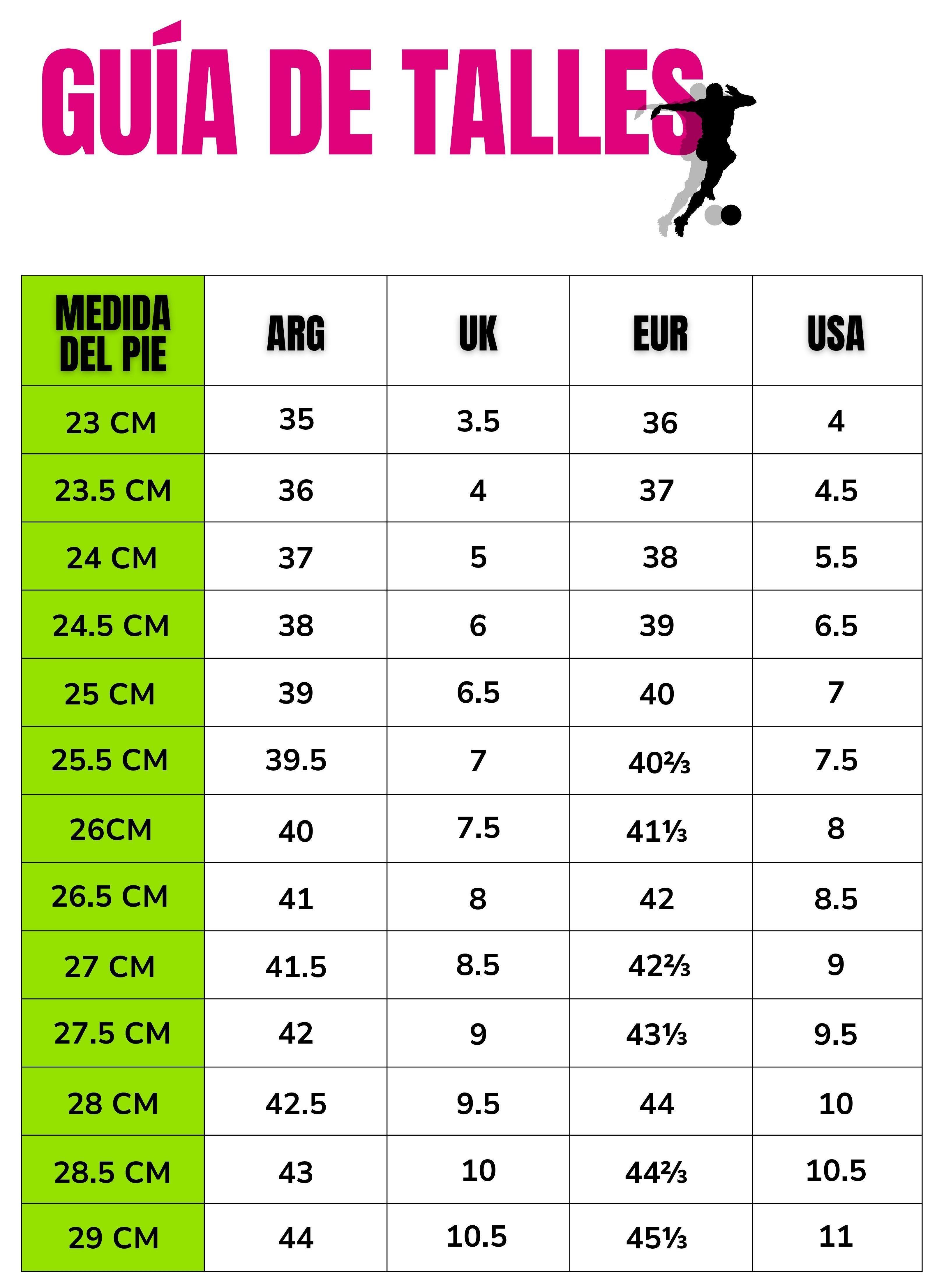 Para elegir el talle correcto, medĂ tu pie apoyĂĄndolo en el suelo desde el talĂłn hasta la punta del dedo mĂĄs largo.