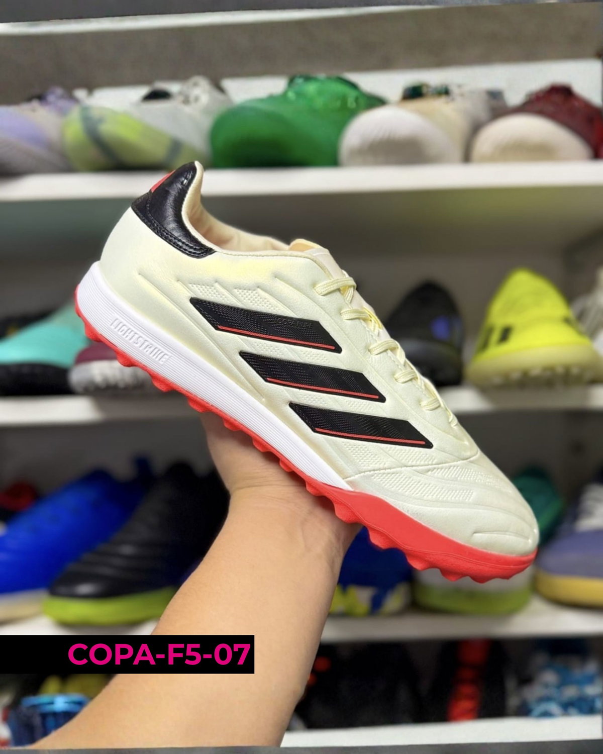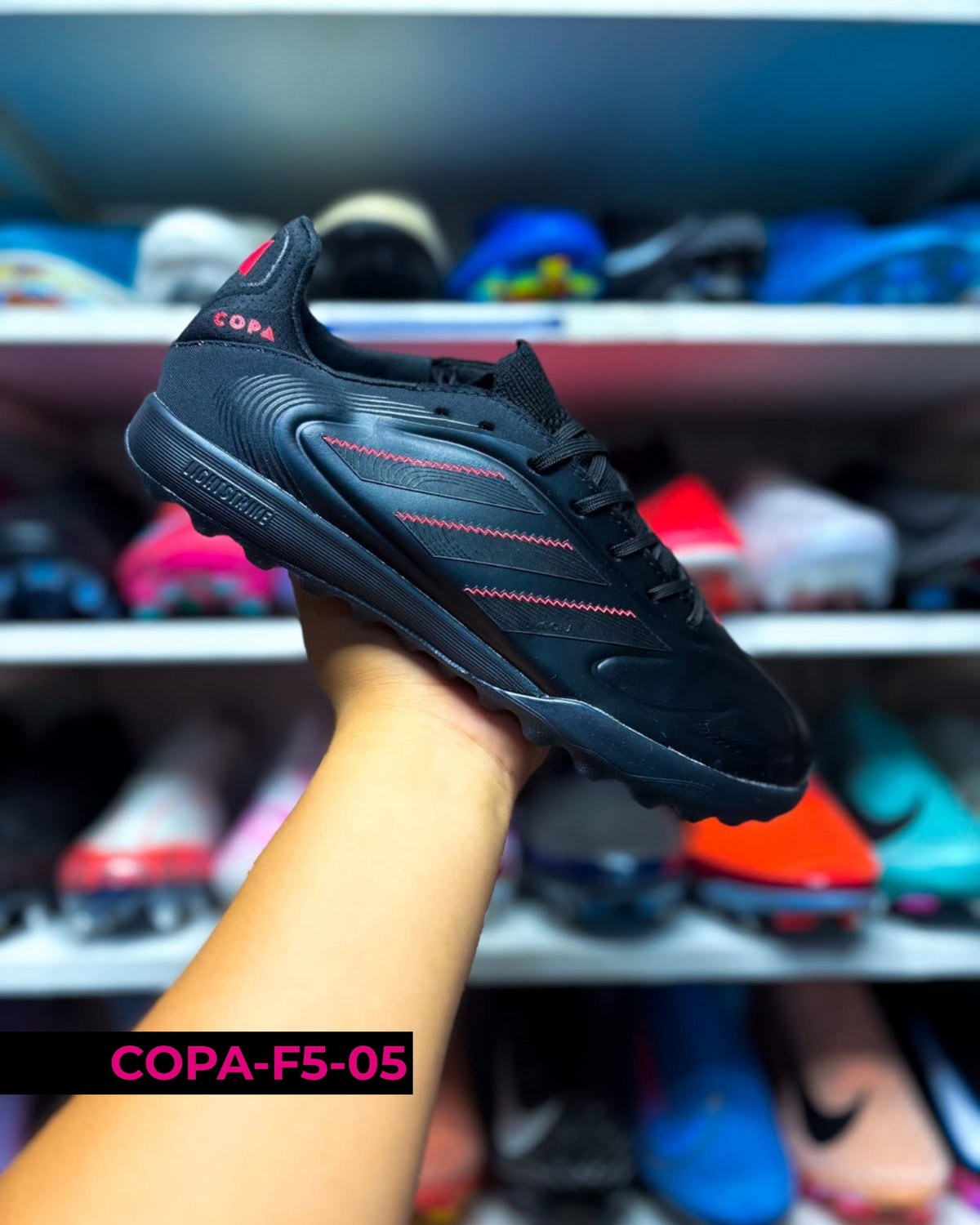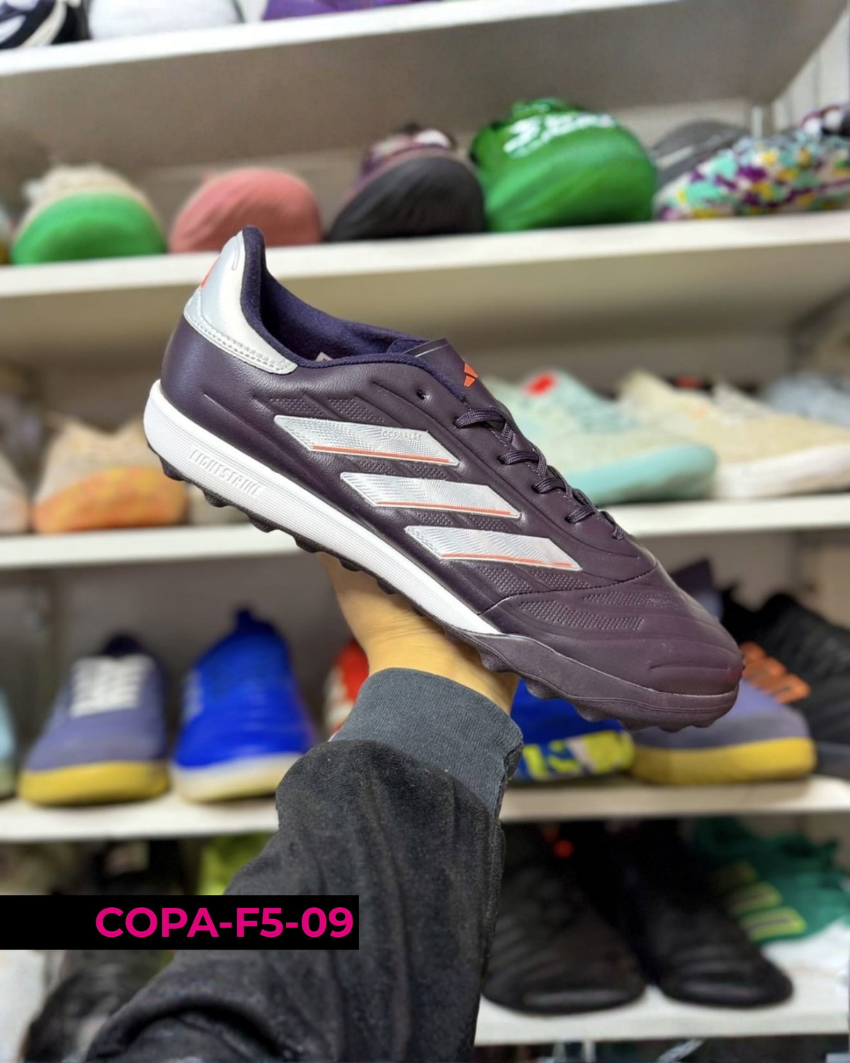 Botines Adidas Copa F5 para uso en césped sintético (turf), con suela de tapones cortos que mejora la tracción y estabilidad en superficies duras. Su diseño prioriza la comodidad y el control, adaptándose al pie para un juego más seguro y preciso. Ideales para entrenamientos y partidos recreativos 🔥⚽