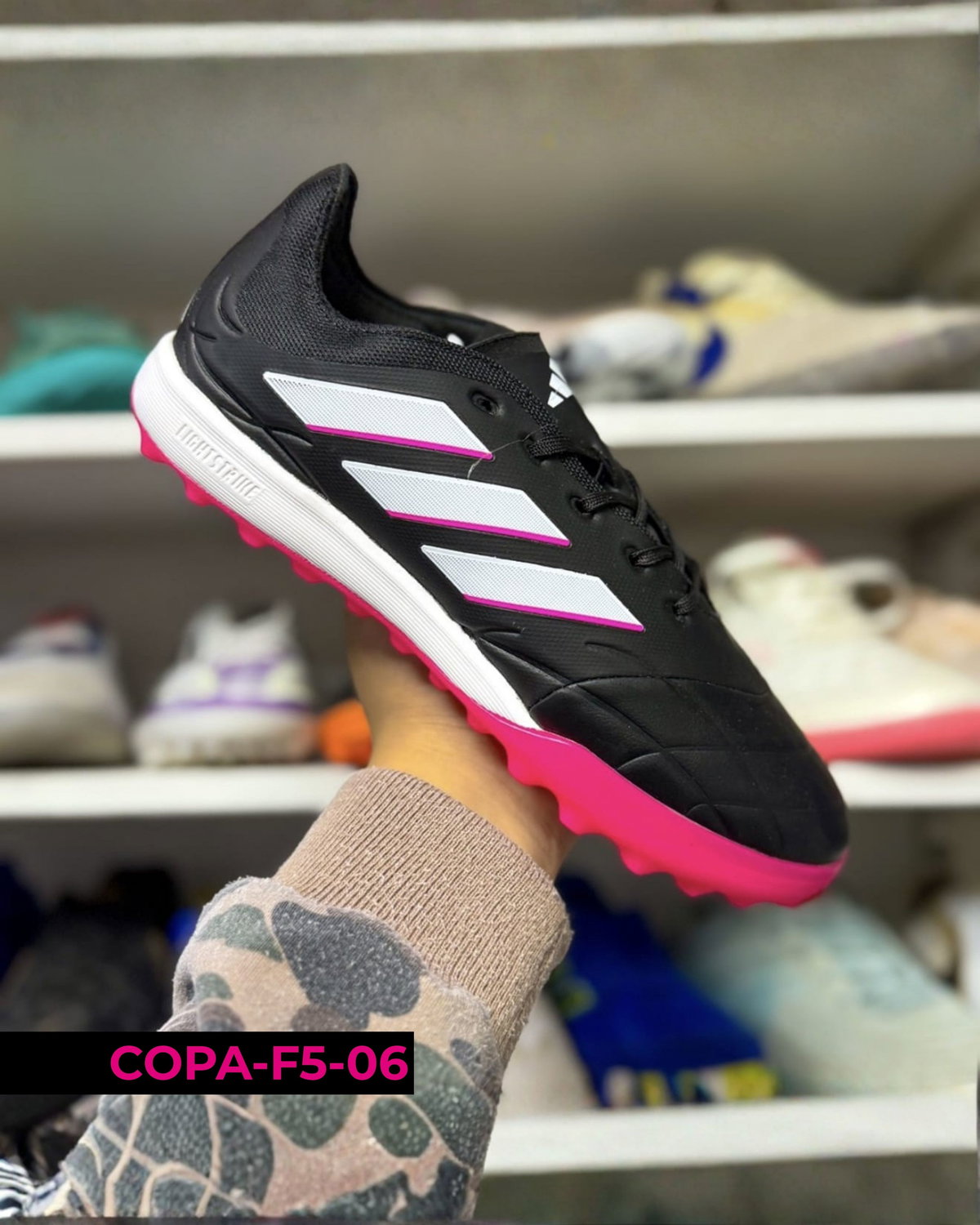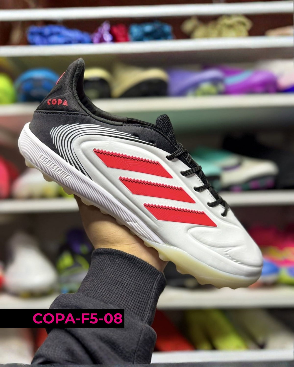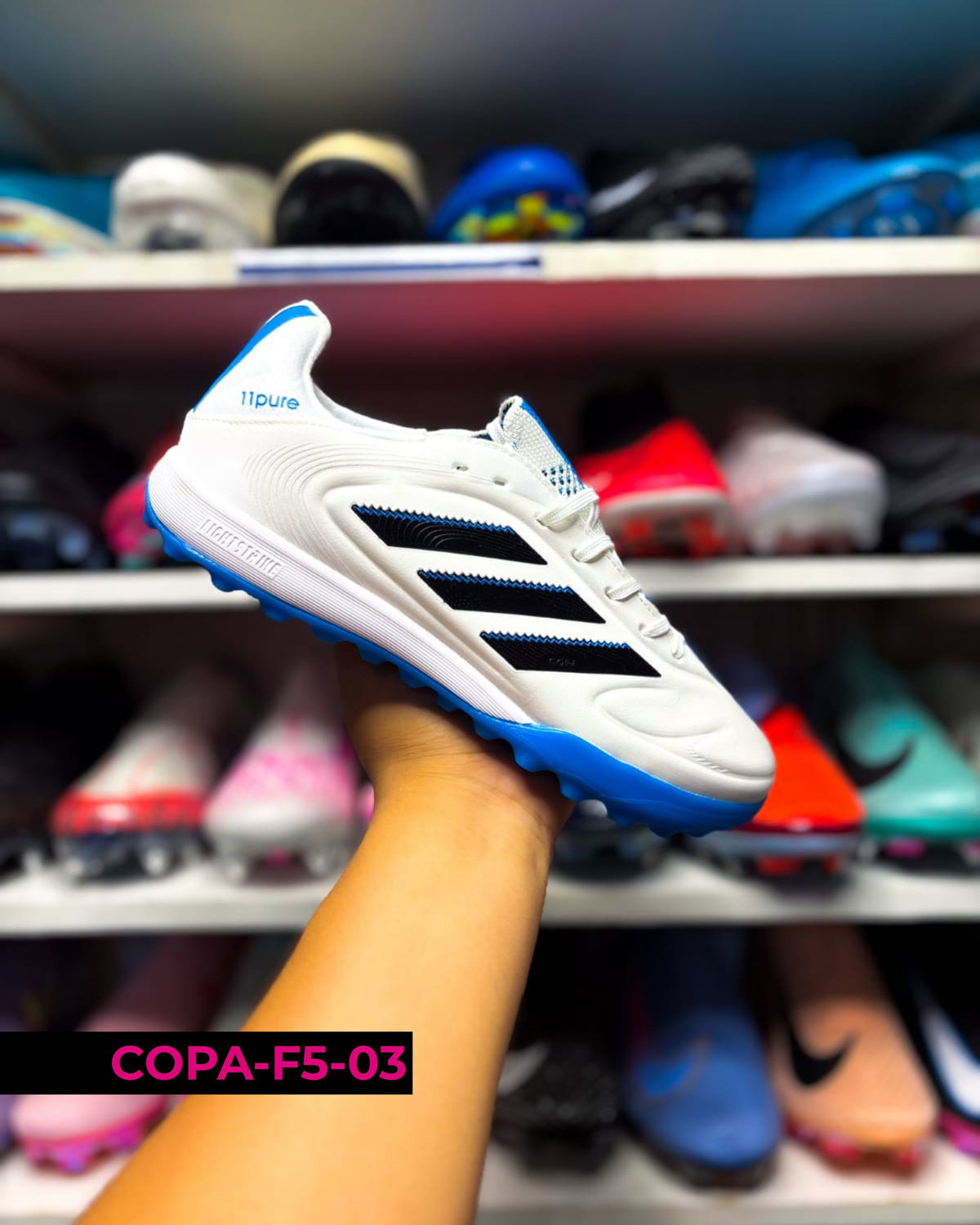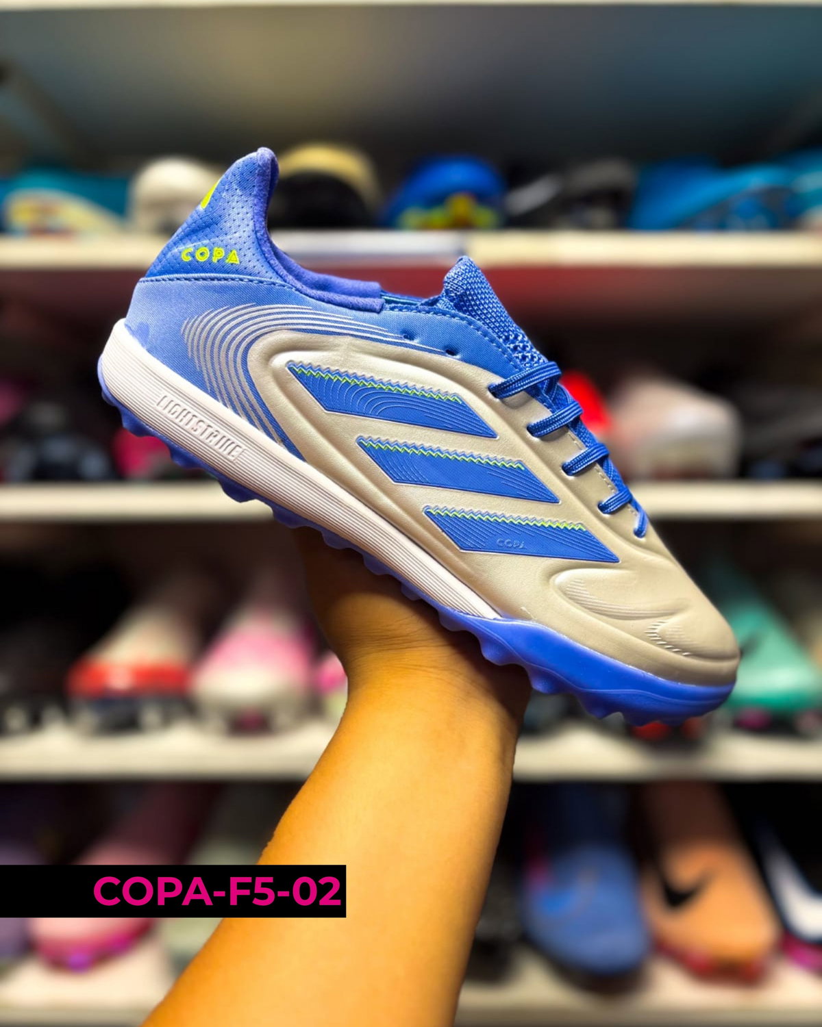 Botines Adidas Copa F5 para uso en césped sintético (turf), con suela de tapones cortos que mejora la tracción y estabilidad en superficies duras. Su diseño prioriza la comodidad y el control, adaptándose al pie para un juego más seguro y preciso. Ideales para entrenamientos y partidos recreativos 🔥⚽