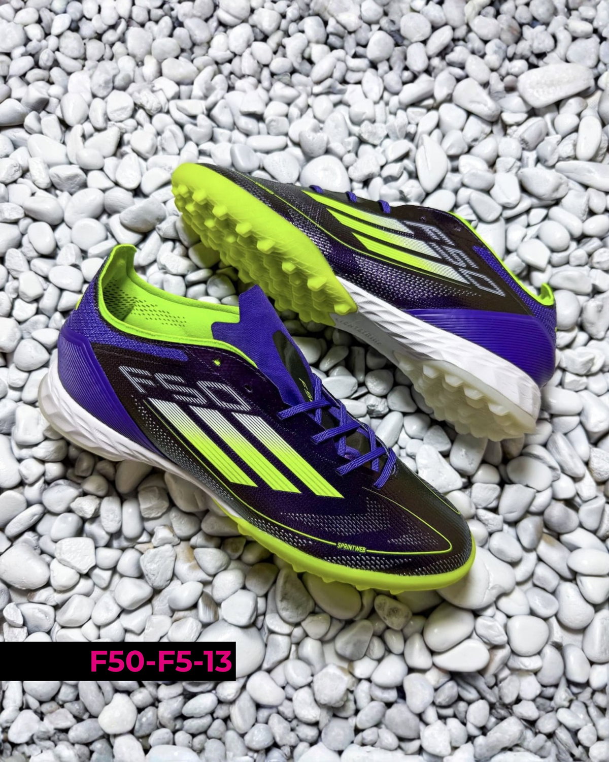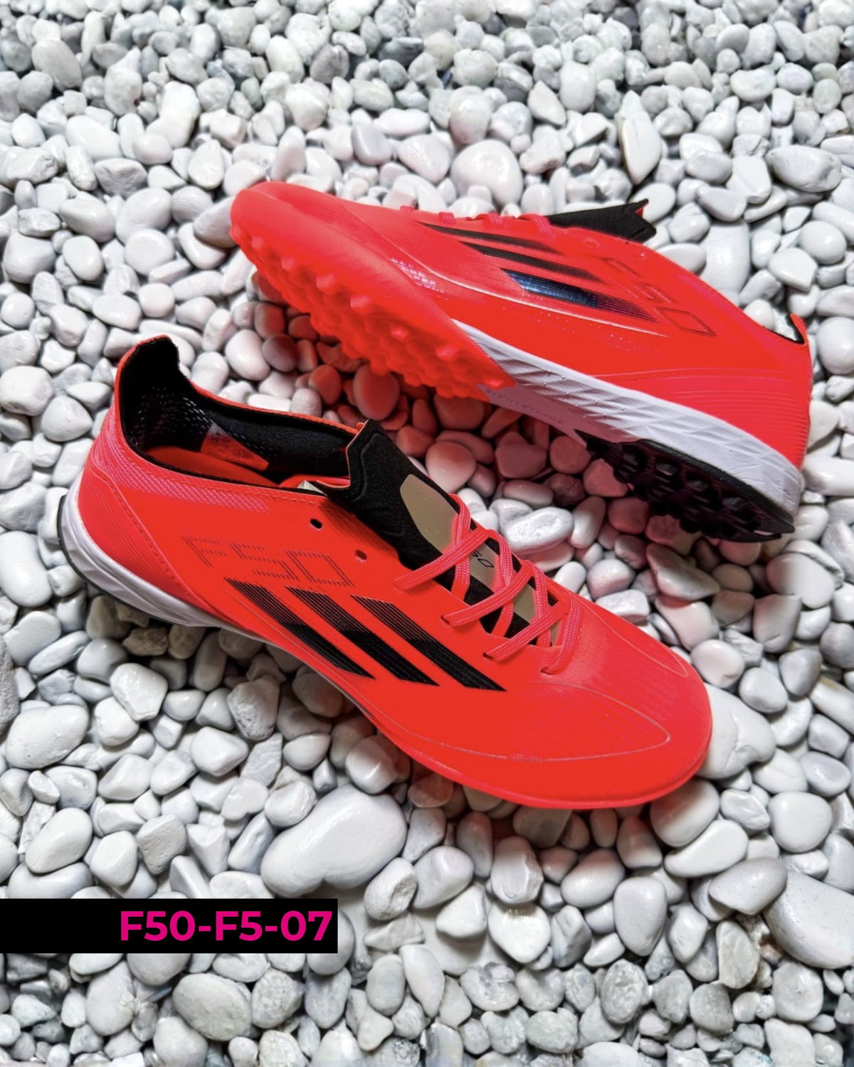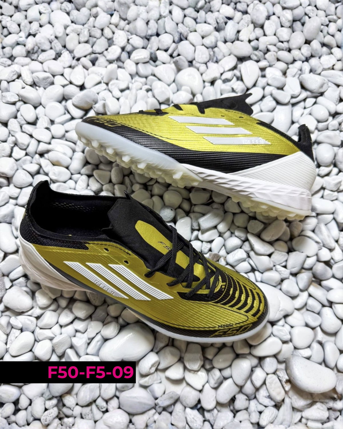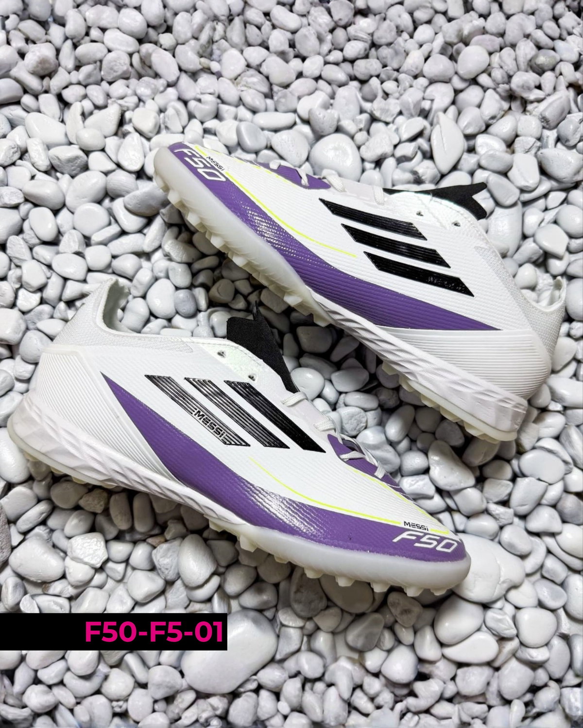 Botines Adidas F50 F5 diseñados para fútbol en canchas de césped sintético (tipo turf). Se destacan por su ligereza y ajuste cómodo, permitiendo movimientos rápidos y mayor agilidad en el juego. Su suela de múltiples tapones brinda buena tracción y estabilidad en superficies duras. Ideales para entrenamientos y partidos recreativos, combinan velocidad, control y seguridad en cada jugada