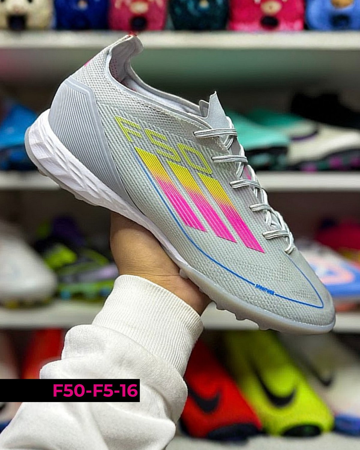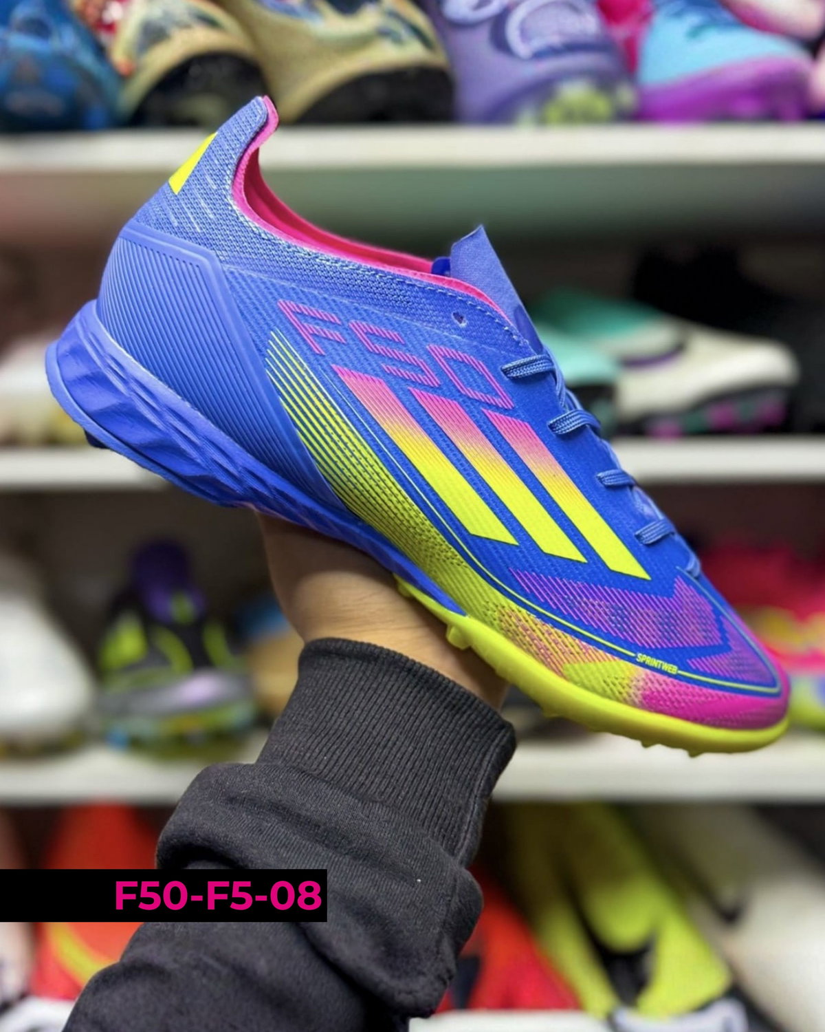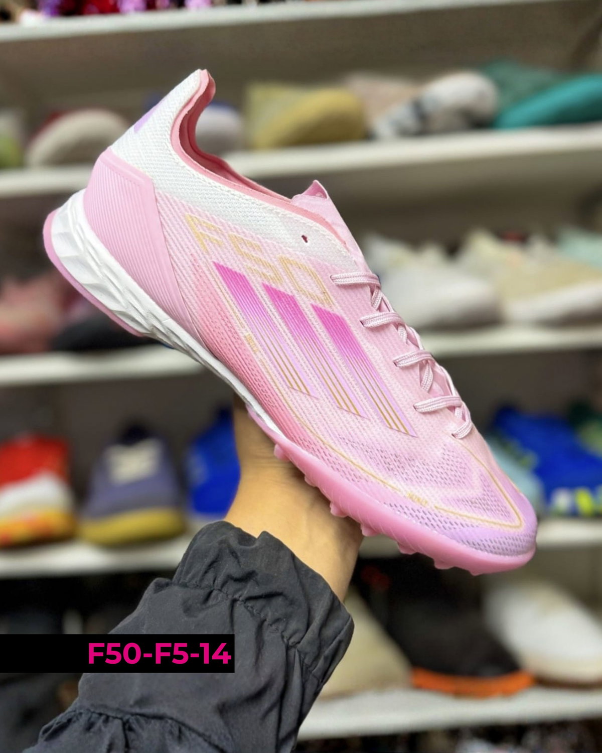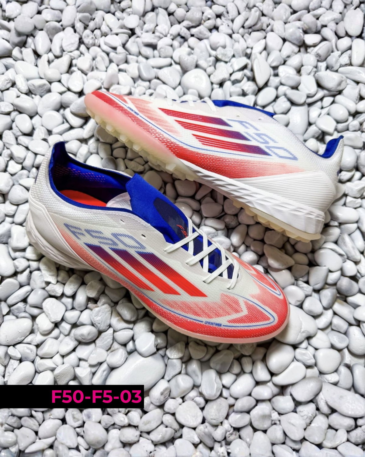 Botines Adidas F50 F5 diseñados para fútbol en canchas de césped sintético (tipo turf). Se destacan por su ligereza y ajuste cómodo, permitiendo movimientos rápidos y mayor agilidad en el juego. Su suela de múltiples tapones brinda buena tracción y estabilidad en superficies duras. Ideales para entrenamientos y partidos recreativos, combinan velocidad, control y seguridad en cada jugada